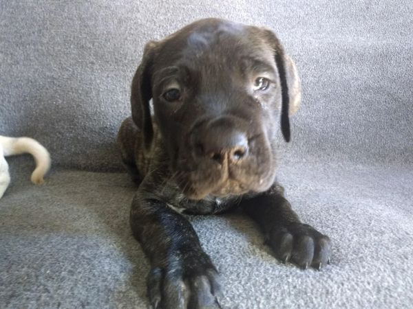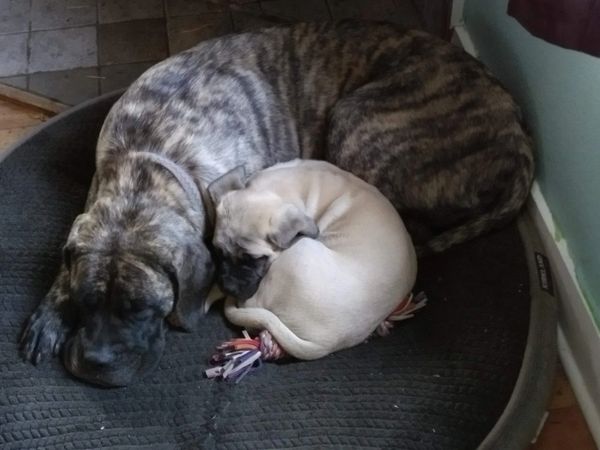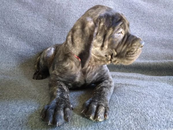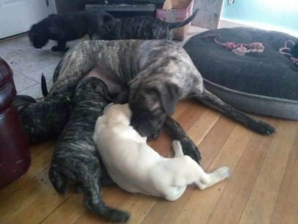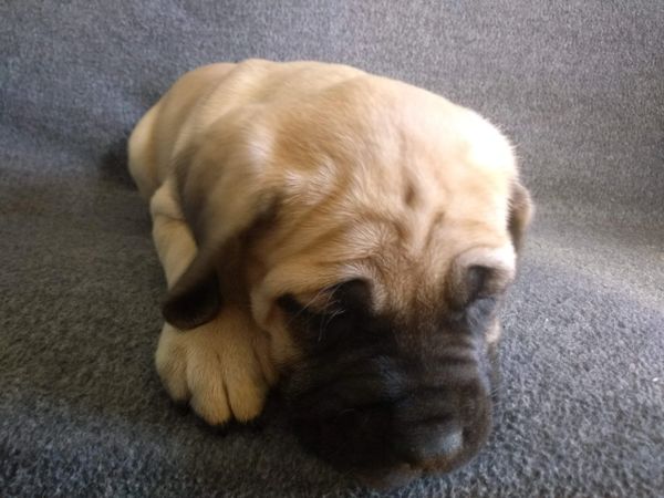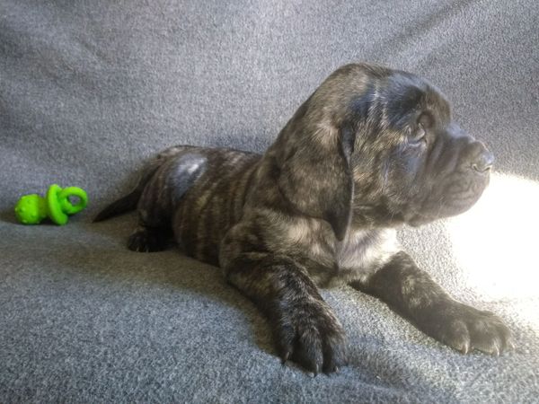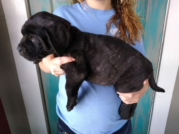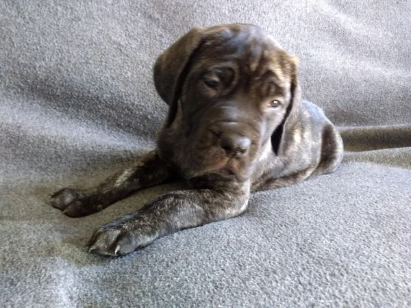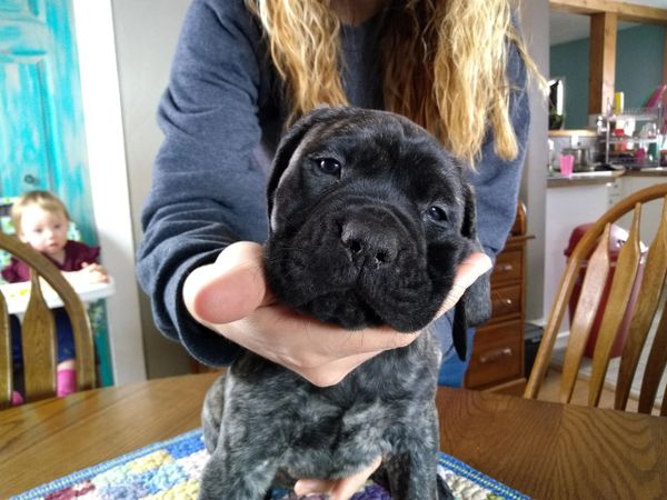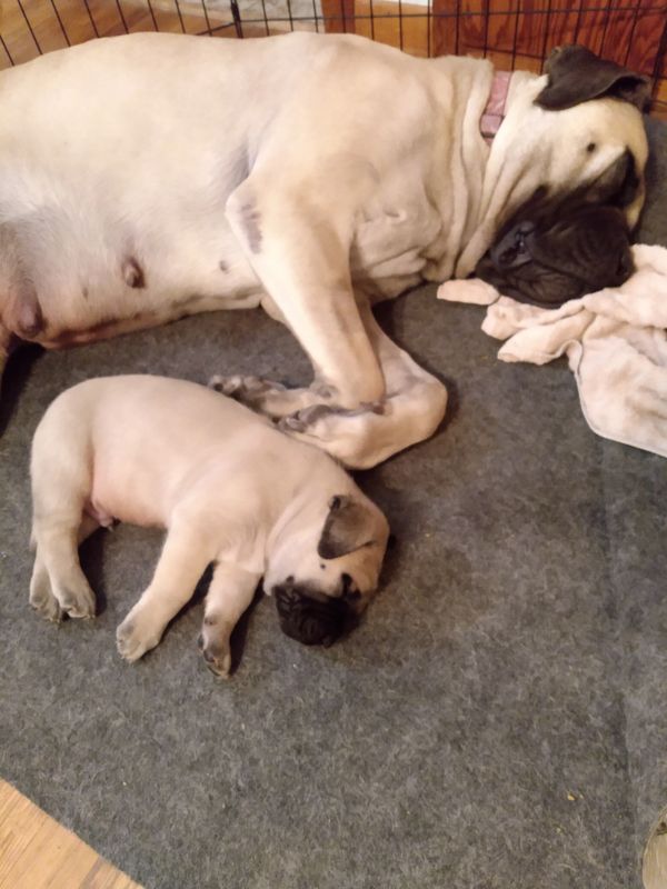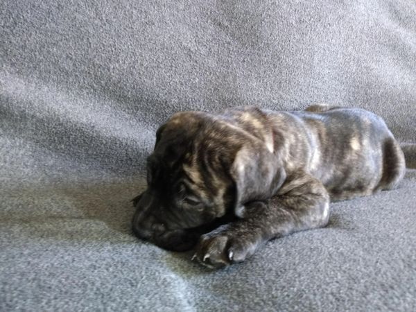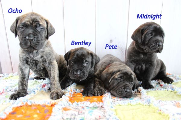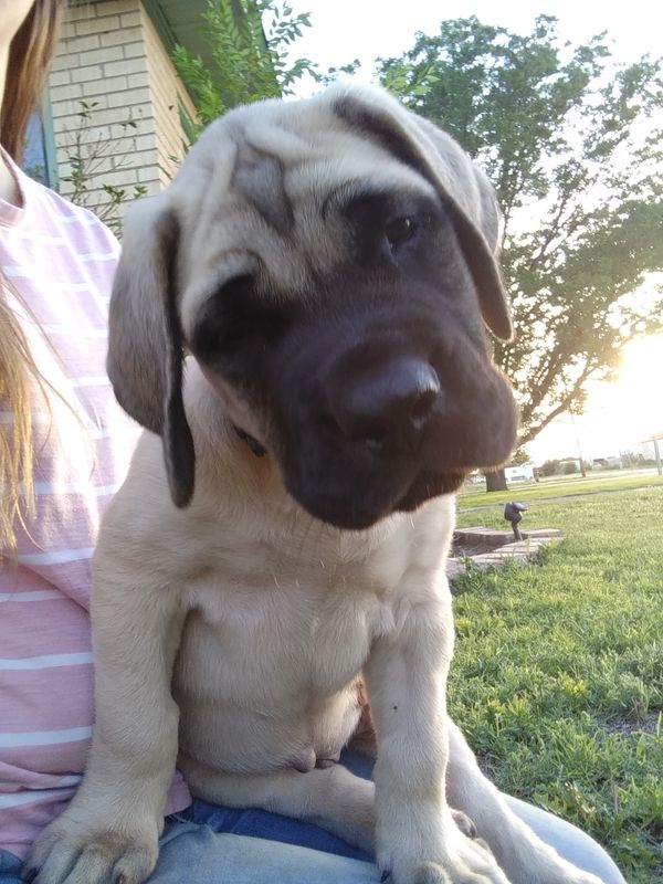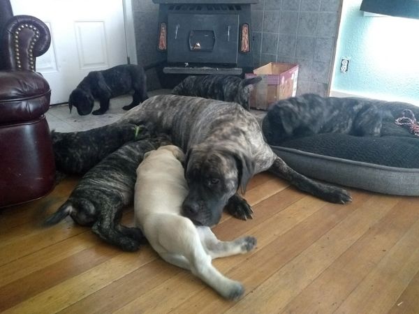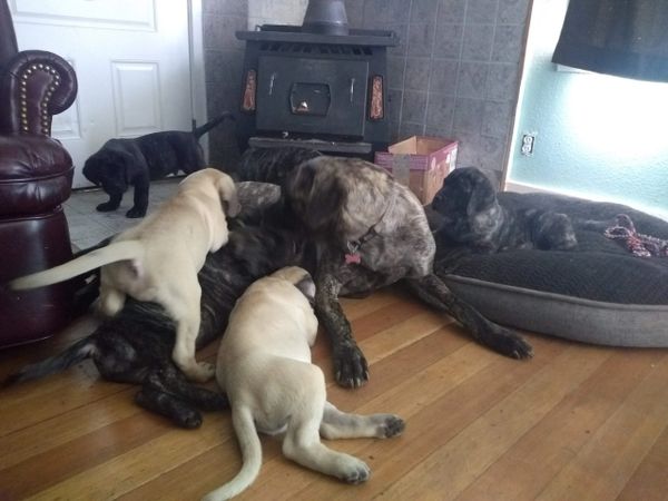 For those familiar with this noble breed, no introduction is necessary. If you would like to learn more before considering a puppy from anywhere, we love to visit about our Mastiffs. The short description is, they are: Loyal, excellent with small children, intelligent, watchful, wise, gentle, sometimes a tiny bit mischievous, silly, playful and very loving.